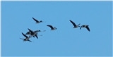 Полет белолобых гусей.