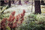 | Фрагмент брусничной поляны в лесу |