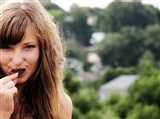 | She smiles |