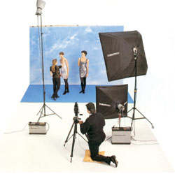 Определив количество источников света, можно обдумать и комбинированный вариант комплектации системы освещения. Например, генераторные системы для шести осветительных головок и три моноблока. Желательно, чтобы все это было одной марки или одной системы. При этом мы получаем еще и возможность выполнения параллельно двух фотосъемок. Если при работе в павильоне не задействованы все приборы, ассистент фотографа всегда сможет выполнить выездную съемку, взяв с собой три моноблока с необходимыми аксессуарами. А вообще опыт показывает, что со временем в студии появляется отдельный комплект моноблоков и принадлежностей, который предназначается для выездных работ.