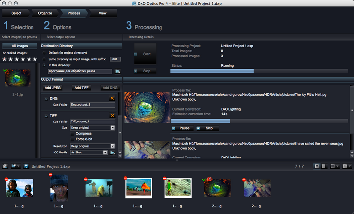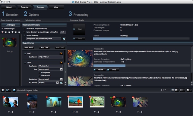 Преимущество DxO Optics - в результатах пакетной обработки. Создатели программы уделили особое внимание автоматическим функциям, позволяющим добиться качественного результата без участия пользователя (устранение оптических искажений, параметры цвета, экспокоррекция).