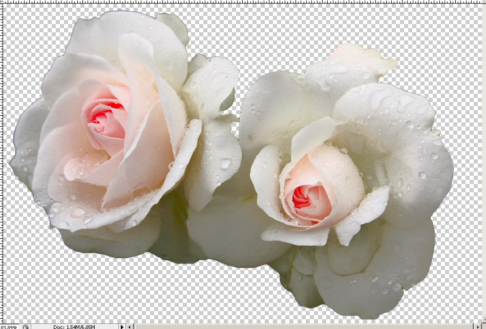 Первое, что я сделаю, отделю две розы от фона, который я обрабатывать не собираюсь. Для этого я воспользуюсь инструментом быстрого выделения в моем Photoshop CS3. (Этот инструмент находится в связке с Волшебной палочкой).