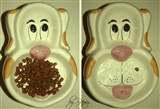 Собачка явно маленькая :) и миску вылизывает не чисто :)))))) или много дублей ,наелась :))))))