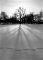 Я бы дерево поместила либо строго по центру, либо сдвинула еще левее. Следы на снегу визуально очерчивают круг вокруг дерева.