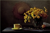 Приятный натюрморт! Только белая ткань совсем не нужна, шляпа не выгодно висит в том месте, да и лимон прилип к вазе, тоже не радует! :-)