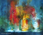 маки и зеленая бутыль