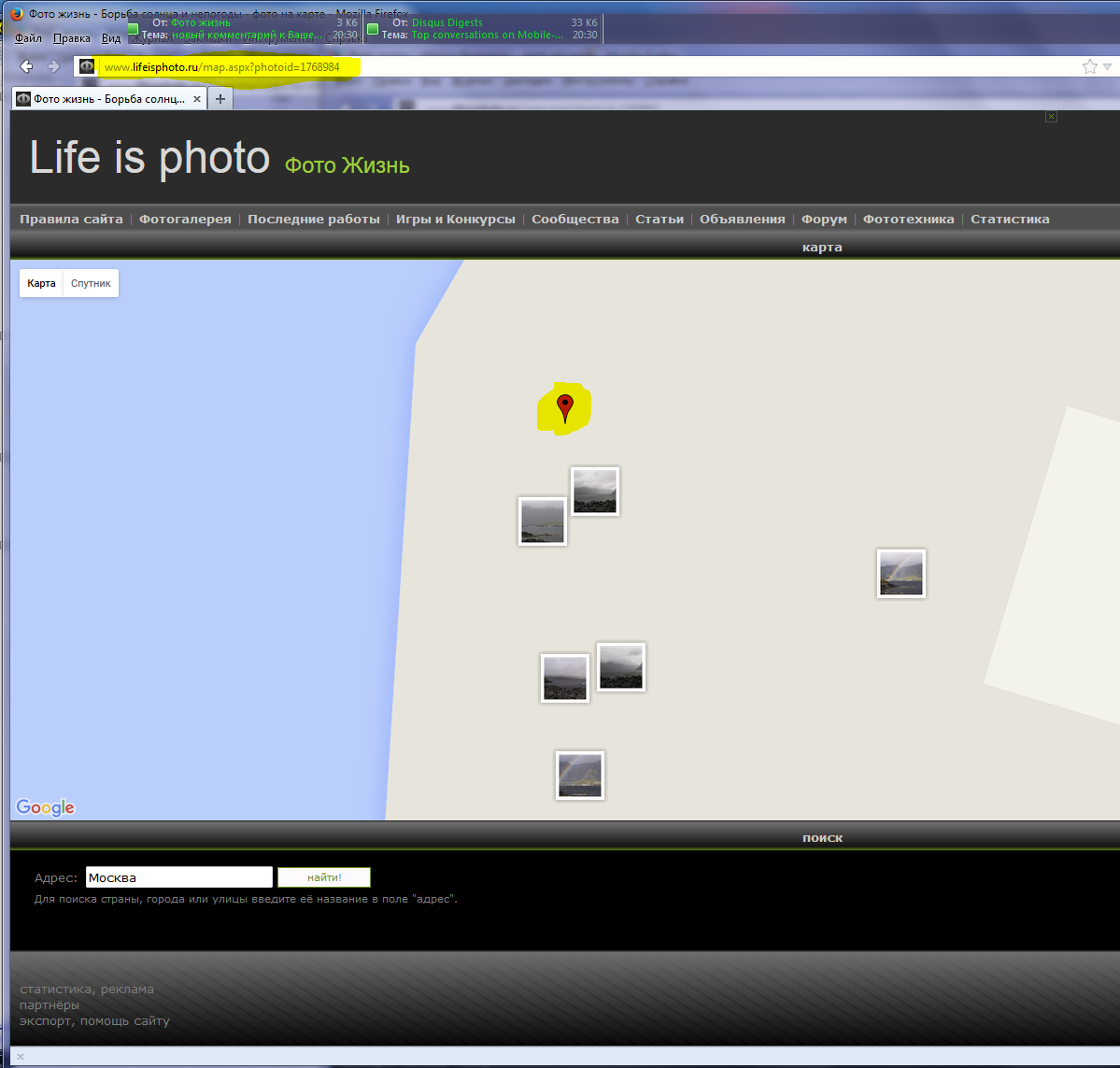 личный кабинет Про отображение фотографий на карте.