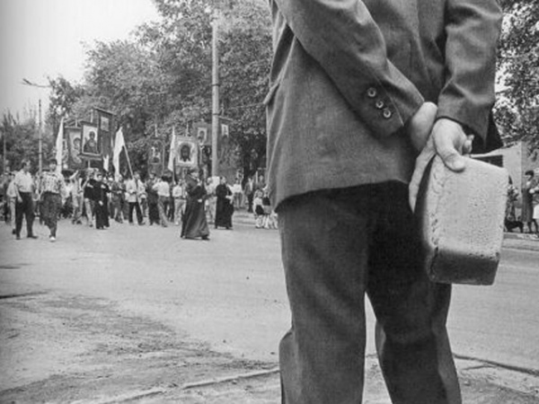 И вот последняя наша с Геной находка, которую он уже не успел напечатать как следует, - люди как дерево. На наших глазах население, толпа, обыватели превращаются в народ, объединенный и крепкий в своей Идее. Не хочется думать, что это та самая курская церковь, в которой батюшка проповедует ненависть к "жидовствующим", чеченцам, католикам или какую-то иную ненависть. На снимке Бодрова - другая Церковь и другая Вера. Эта мощная,совершенно неожиданная работа сравнима разве только с его гениальной девочкой на шаре. Сделать за свою жизнь даже только две такие фотографии - это значит прожить жизнь не зря и с пользой для России. Эти высокие слова, безусловно, относятся к жизни Геннадия Бодрова,фотографа.
