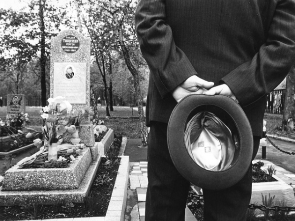 Бодров - мастер ситуации, подтекста. Фотографию сдевочкой на шаре можно "читать" всю жизнь. Есть же такие книги, такие стихи или музыка - на всю жизнь. Ее нельзя пересказать словами.Круговращение жизни, жизнь-игра, абсолютная бессмысленность и внезапно открывшийся смысл сущего. Момент истины, момент искусства. Если когда-то будет создан Музей шедевров фотографии, она должна быть там, среди равных. Мужчина, даже не мужчина, а пиджак без головы на кладбище,руки за спиной, велюровая шляпа; вдалеке на могильном камне фотография другого - молодого. Сын, отец, Афганистан, Чечня? О чем это, почему шляпа?