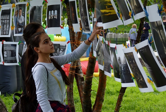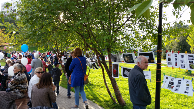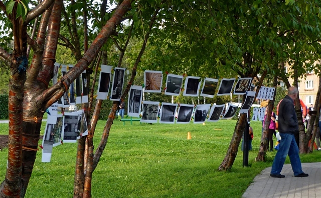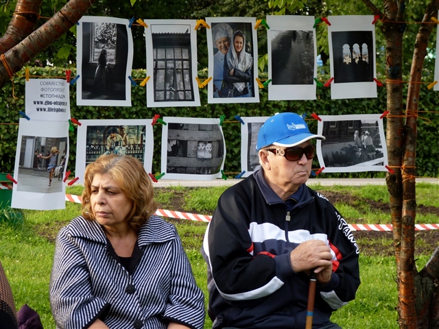 На мероприятии (концертная площадка и игровые зоны), по сводкам ответственного от полиции было где-то в общей сложности полторы тысячи человек. Экспозиция располагалось чуть поодаль от площадки, но была видна, и люди фотографии смотрели. К сожалению ввиду моей занятости по общей площадке выступлений, постоянно на экспозиции быть не мог, но видел, как люди смотрели, фотографировались на фоне, что приятно)