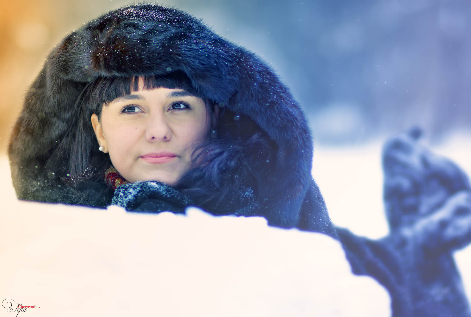 Белое пятно-это снег....)))) Девушка из-за сугроба выглядывает.... Блин, а мне оно нравится...не знал, что столько брака в фотах!!!!! Буду учитывать ваши коменты.... | |