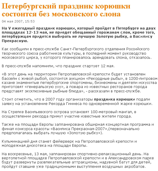Из прессы: По сведениям AllNW.ru, в этом году