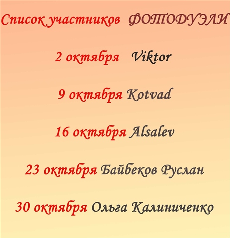 Решением участников сайта победителем признан: _Mira_ Марина Брыдня Следующая фотодуэль № 21 состоится 2 октября в 19-00
