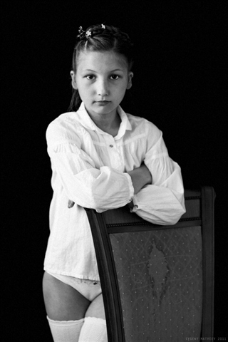 Извините босоногого детства я тут не вижу.. Я Вижу позирующую девочку в трусиках.. И в чулочках.. Нет никакой босоногой жизнерадостной улыбки.. Есть нейтральное выражение лица.. Якобы взрослое.. И стул... Зачем тут стул? Мол присаживайтесь? Ну не вижу я в фотографии дитя... Автор пошел по грани.. Детство ему передать не удалось... Значит остается другая сторона.. И тут одно из двух.. Либо автор не умеет доносить... Либо тут явная пошлость и немножко извращения... Либо просто я вижу детей более светлыми и чистыми.. Да и вообще детство себе иначе представляю | |