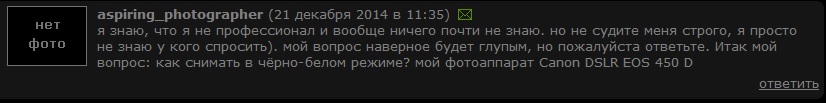 После вопроса как снимать в Ч/Б !? Слово фотограф в нике - звучит гордо!