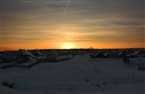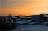 | Зимний рассвет над домами. |