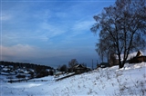 | Снег на склоне и дома. |