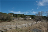 | Ручей, забор и лес на горе. |