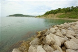 Да не завален горизонт... Всё правильно в перспективе так и должно быть.Если б был левый берег -он тоже бы пришёл к краю мыса