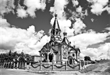 Но в данном случае я пошел на ч/б из-за того, что цвета и в самом деле какие-то...ядовитые. Этот храм выглядит здесь, в селе (пусть даже и столь известном), как что-то ...инородное. Вряд ли здесь была церковь столь "напыщенной" архитектуры и убранства... Хотя - как знать, как знать...