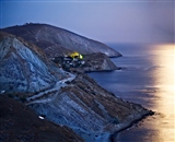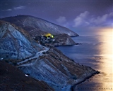 Над морем и поселком спустилась ночь , горят огни заброшенного советского завода