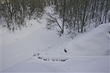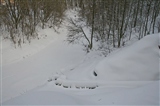 хожу в лес на лыжах. Вижу снежная змея спускается к воде.