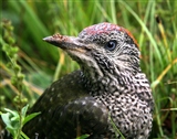 Птенец-слеток дятла.Пасся на лугу,ковыряя землю в поисках съестного.Снято с расстояния 1,5 метра.Подползал на пузе 20 минут :)))