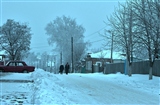 Зима. Иней на проводах.