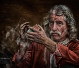 A man puffing on a pipe.