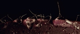 лист цветка, а на нем капельки, работающие увеличительными стеклами)))