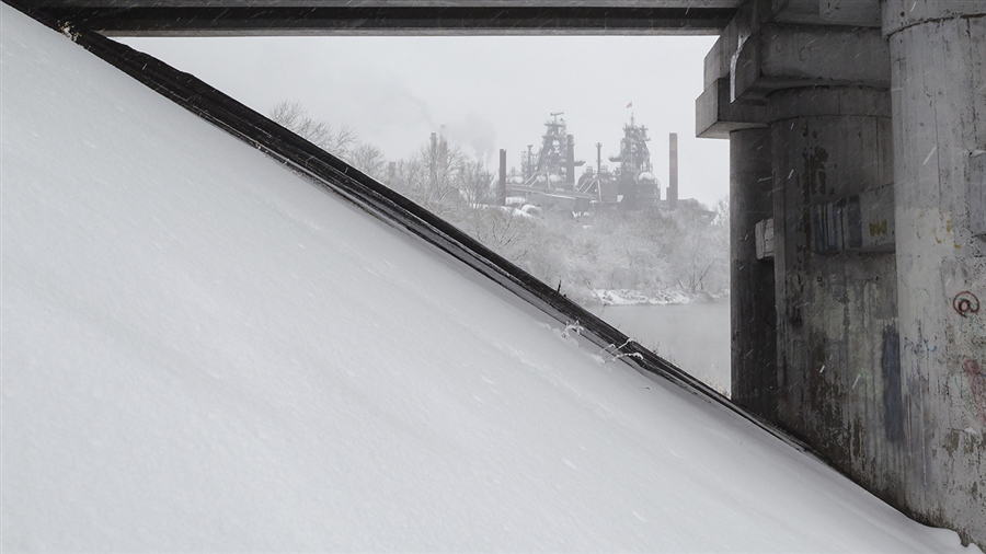 Почти Мариупольские доменные печи завода Азовсталь. Они тоже на берегу (реки Кальмиус.)