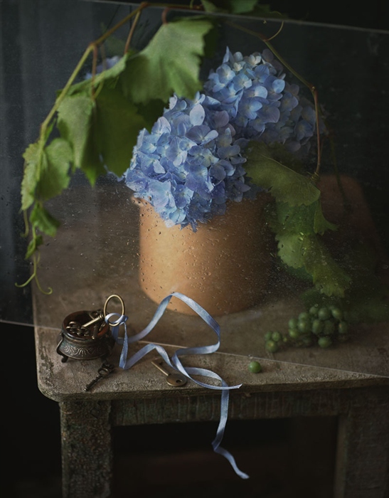 С голубой гортензией...