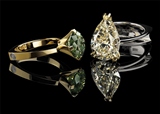 описание:   "ALEXANDER'S HOUSE" (http://alexandershouse.ru). Кольцо "Лесная нимфа". Золото 750, Бриллиант огранки Кр57 - 4.22ct фантазийный жёлто-зелёный/11. Кольцо "Капля солнца". Золото 750, Бриллиант огранки груша Г52 - 9.03ct, 8-4/5