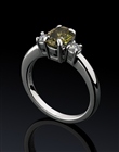 описание:   Съёмка для сайта компании Izmestiev Diamonds (http://www.izmestievdiamonds.ru/). Кольцо из золота 750 родированного. Редкий зелёный Бриллиант огранки Овал-57 1.19 ct 9-4/7А, 2 бриллианта Кр57-0.20 ct 2/2А
