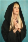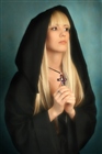 но модель как мраморная, не похожа на монахиню. как-будто послушнице совсем не по душе монастырь, она мечтает о любви, принце на белом коне...