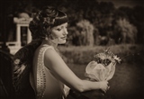 Мне кажется, в этом случае со стилизацией, можно было букет убрать. Он немного "выдаёт" современность... Или попробовать с цветами без "сеточки"... И совсем чуток резкости на лицо...