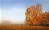 Красивый туман и березы в осеннем золоте.