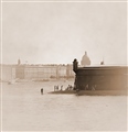 В полуденной тени рыбак наживку заправлят и в мутную водицу с надеждой отпраляет (viewing instruction : fisherman\the sky\sky reflection in the water & back to fisherman)